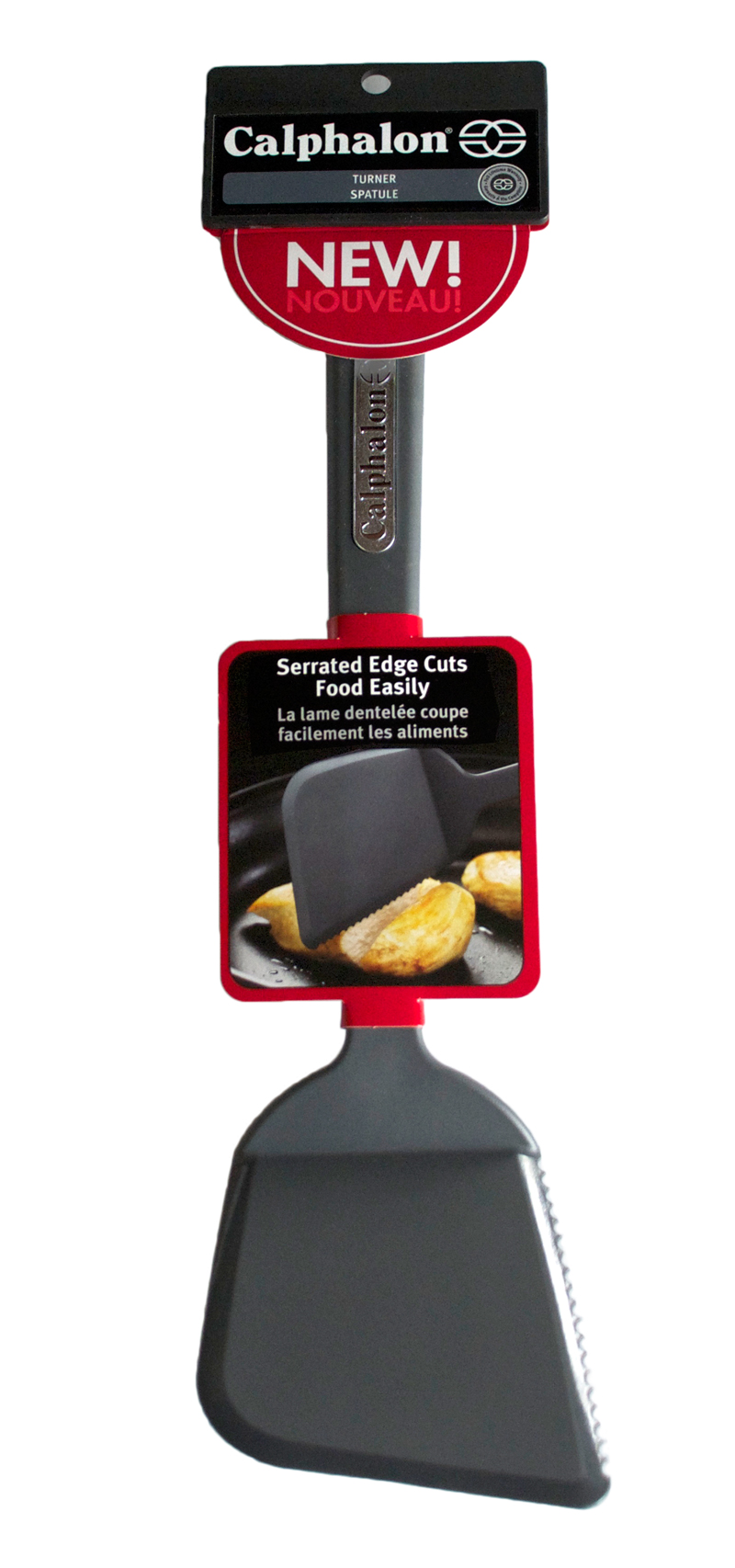 Well now they’ve moved into the small kitchen tool area and contacted us to be in our MARY’s secret ingredients box with this newly designed serrated spatula. Or would you call this a turner? I dunno. But I do know that this is very cool and handy – like two tools in one! The angle is perfect for flipping and the serrated edge allows you to make a little cut easily to check on doneness.
