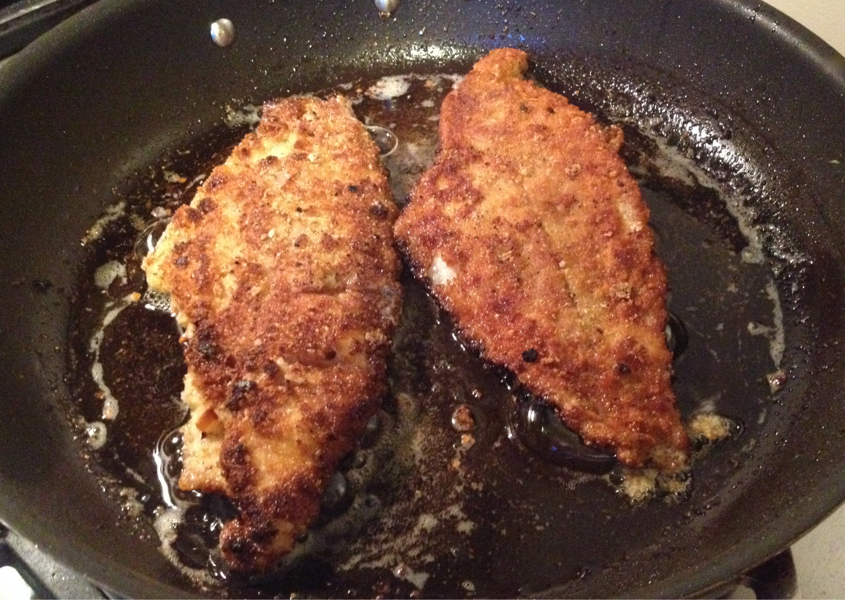 To be honest, this is really healthy because it’s baked. But to be honest, it doesn’t really get crusty and crisp, but it is full of flavor. Now I know, with the Italians, cheese on fish is a HUGE no no. But try this, you won’t be sorry. You can buy these chips at most Whole Foods and natural food stores.